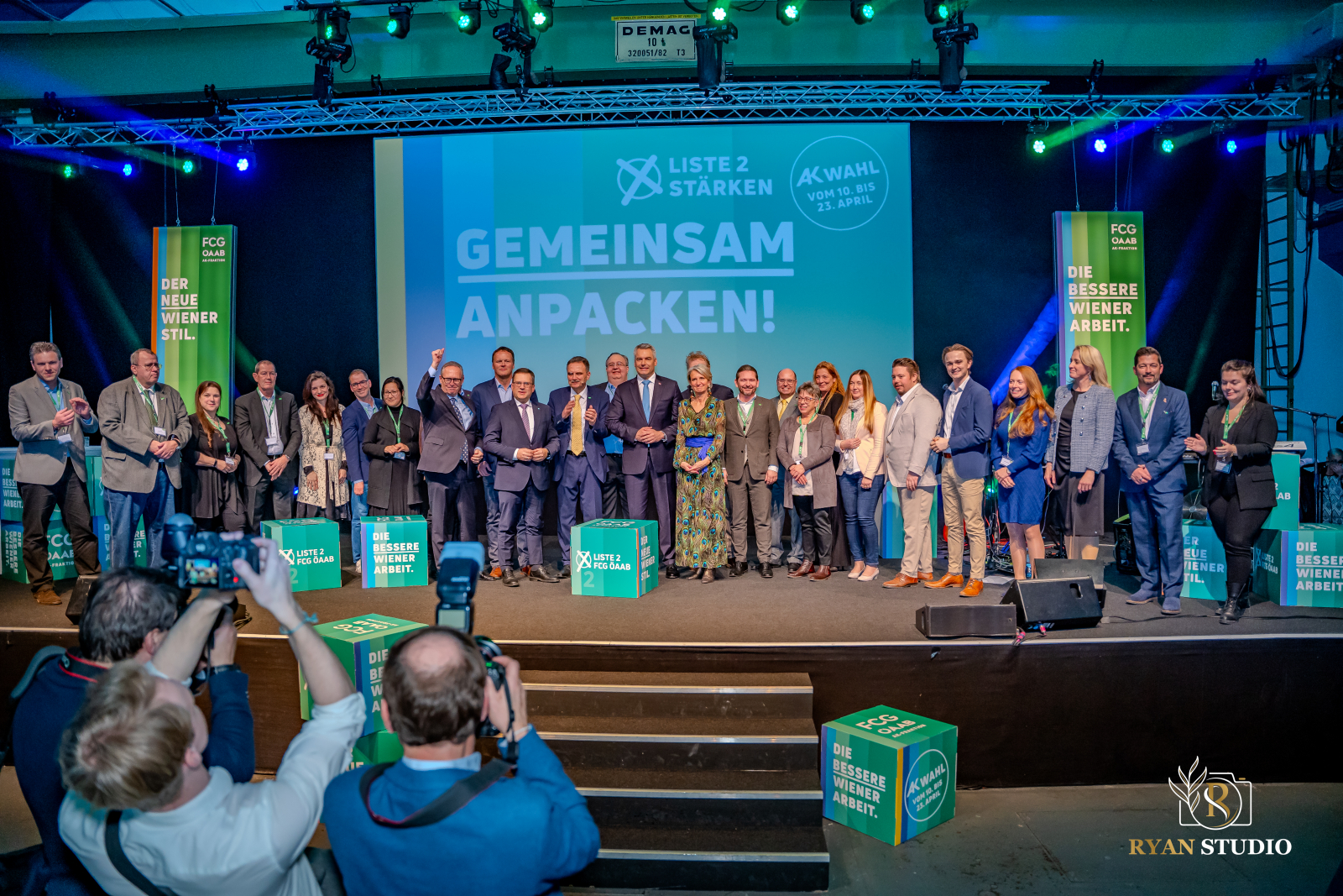 Am 31. Januar fand der feierliche Wahlkampfauftakt der FFCG/Öaab WienArbeiterkammer Fraktion mit unserem Spitzenkandidaten Fritz Pöltl statt, und wir durften hochrangige Gäste begrüßen, darunter Bundeskanzler KKarl Nehammer den Klubobmann und Bundesobmann des ÖÖAAB AAugust Wöginger die FCG Bundesvorsitzende RRomana Deckenbachersowie den Landesparteiobmann und Stadtrat KKarl Mahrer